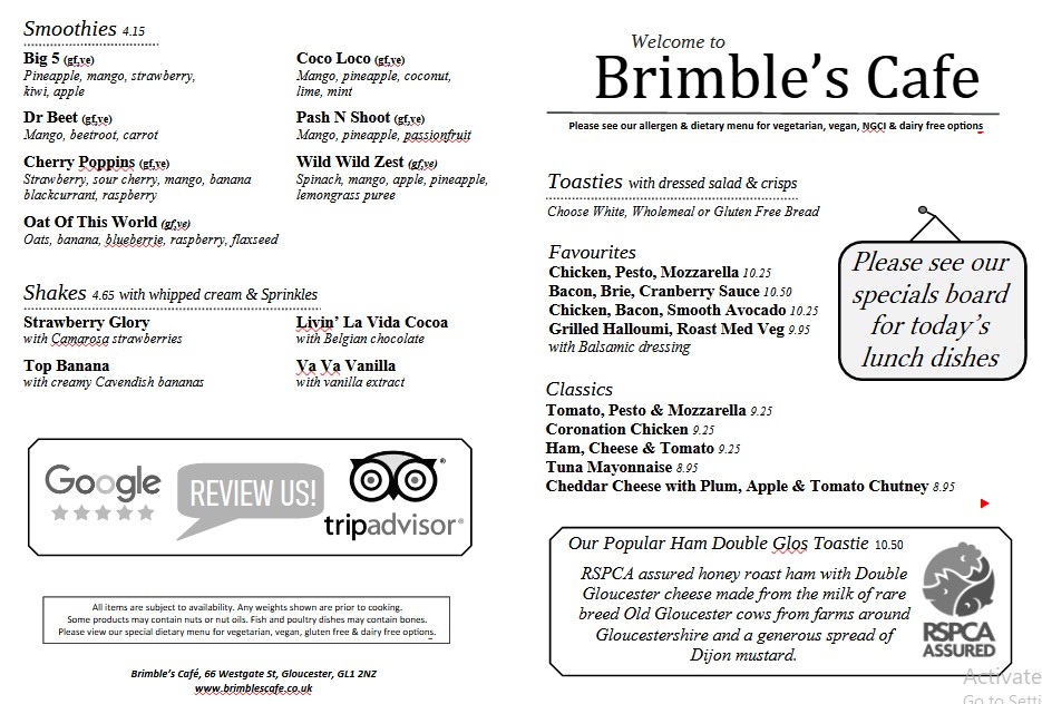 **Brimble's Cafe**, located in the charming heart of Gloucester at 66 Westgate St, is a delightful oasis that welcomes both locals and visitors alike. This independent cafe has quickly garnered a reputation for its warm ambiance, eclectic menu, and friendly service, making it a perfect spot to unwind with a cup of coffee or enjoy a hearty meal.